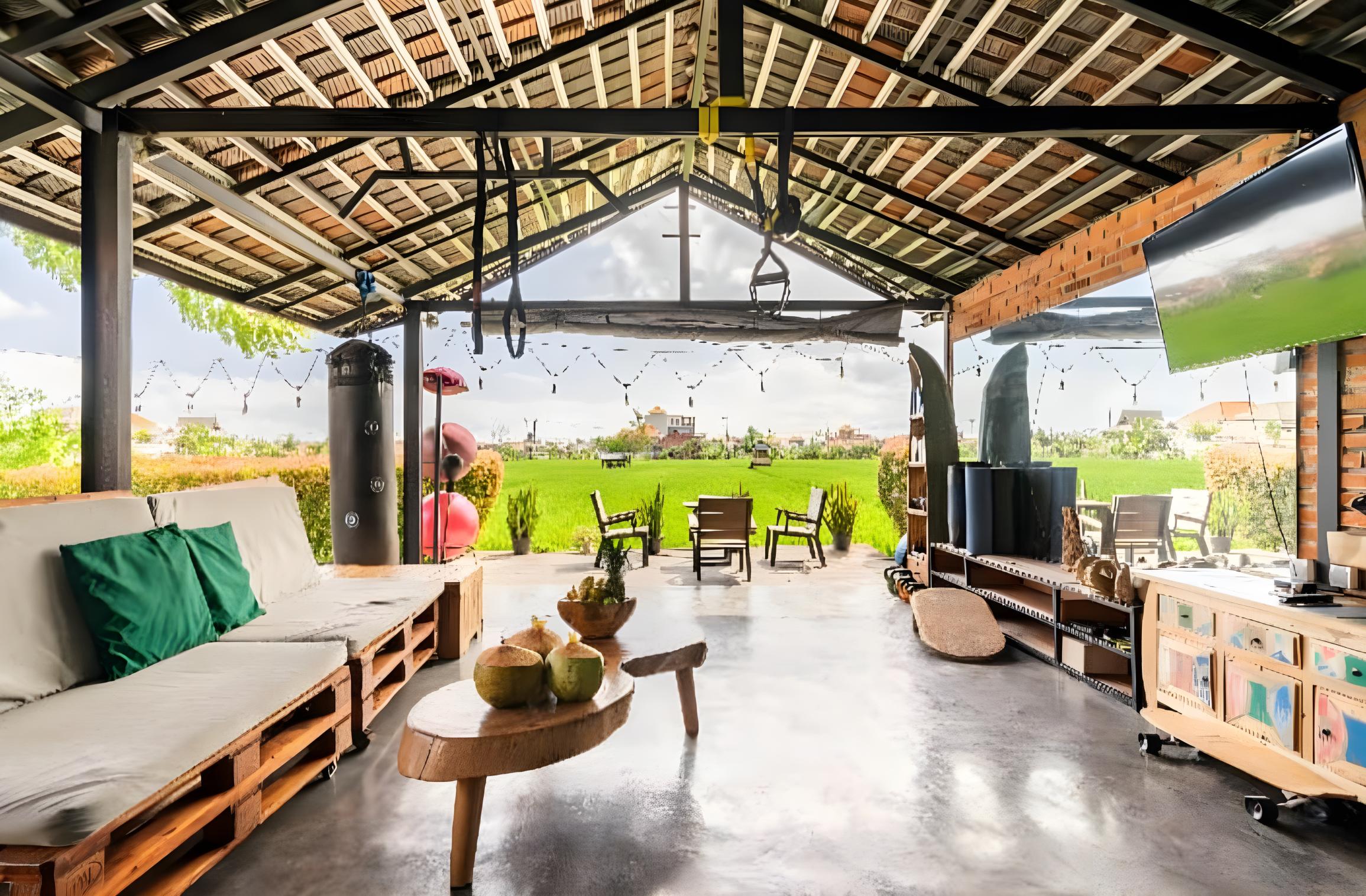 - Зона отдыха с видом на рисовые поля