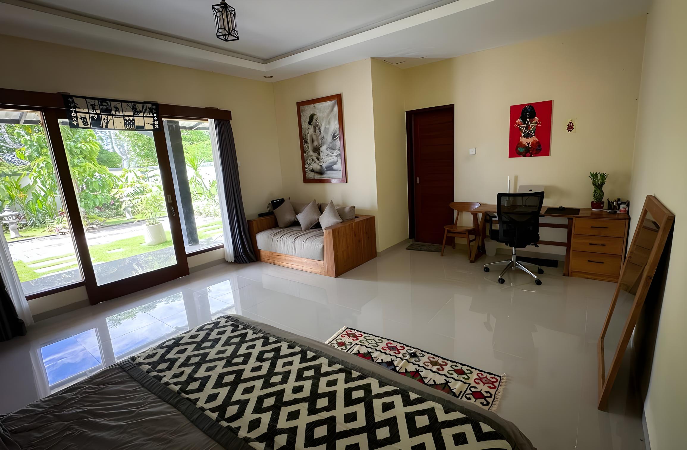 Одна спальня с рабочим местом. Открытая кухня. Просторный сад. Свой гараж. Бассейна нет. В наличии всё необходимое для комфортного проживания. $750 в месяц, можно арендовать на максимум на 2.