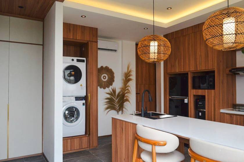 ✅ В каждом апартаменте стиральная и сушильная машины, интернет, бойлер, также тренажёрный зал, сауна, подземная парковка, бассейн, терасса и др.