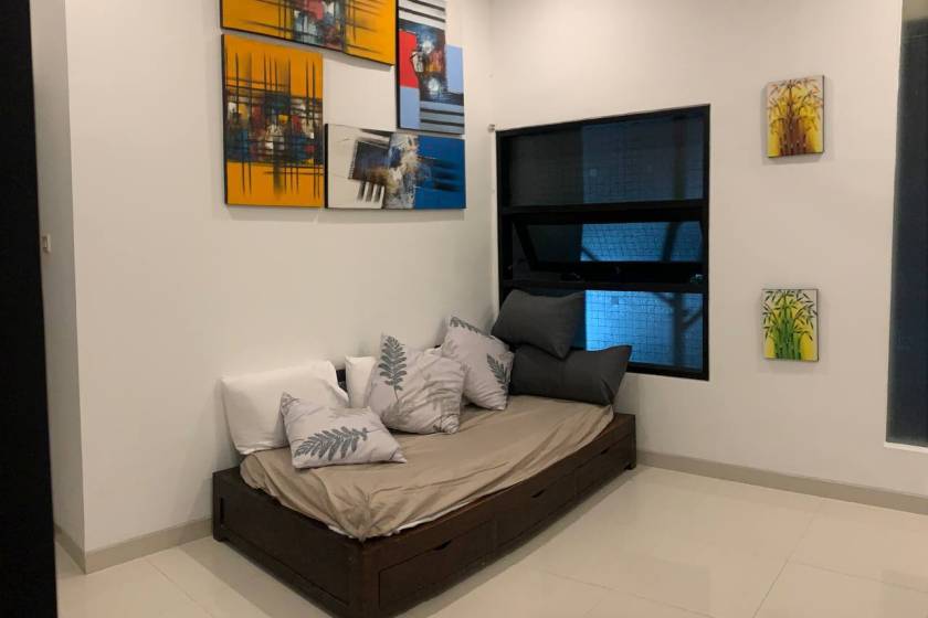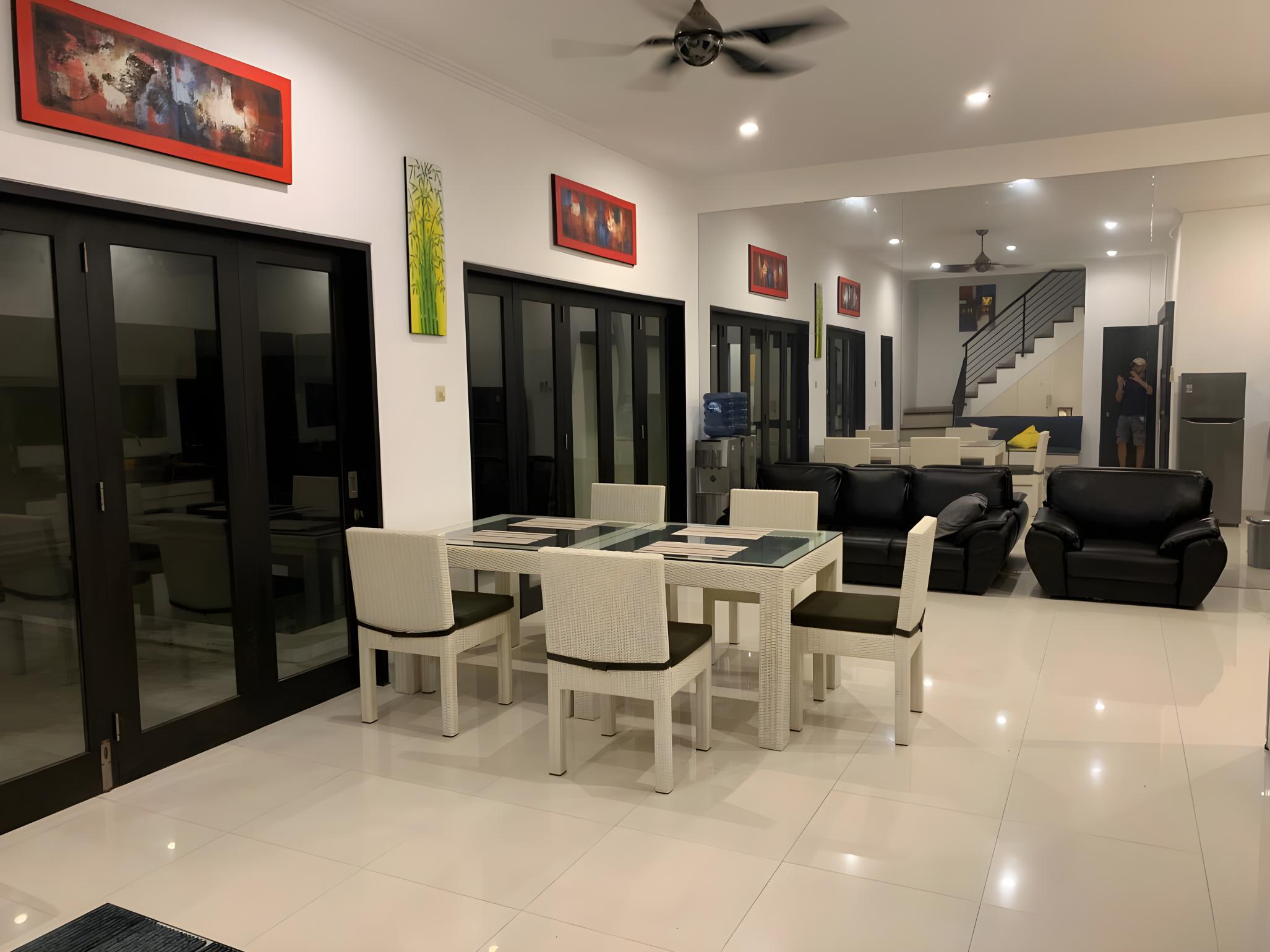 1-2-3 BR Цена снижена из-за стройки. Копошатся с 9 до 16. Ночь тихая, поскольку вдали от проезжей части. Джимбаран в сторону Балангана. Охраняемая территория. Все есть. Живу тут три года. Можно снимать покомнатно -8 млн/мес. Или целиком 22 млн. Все включено.