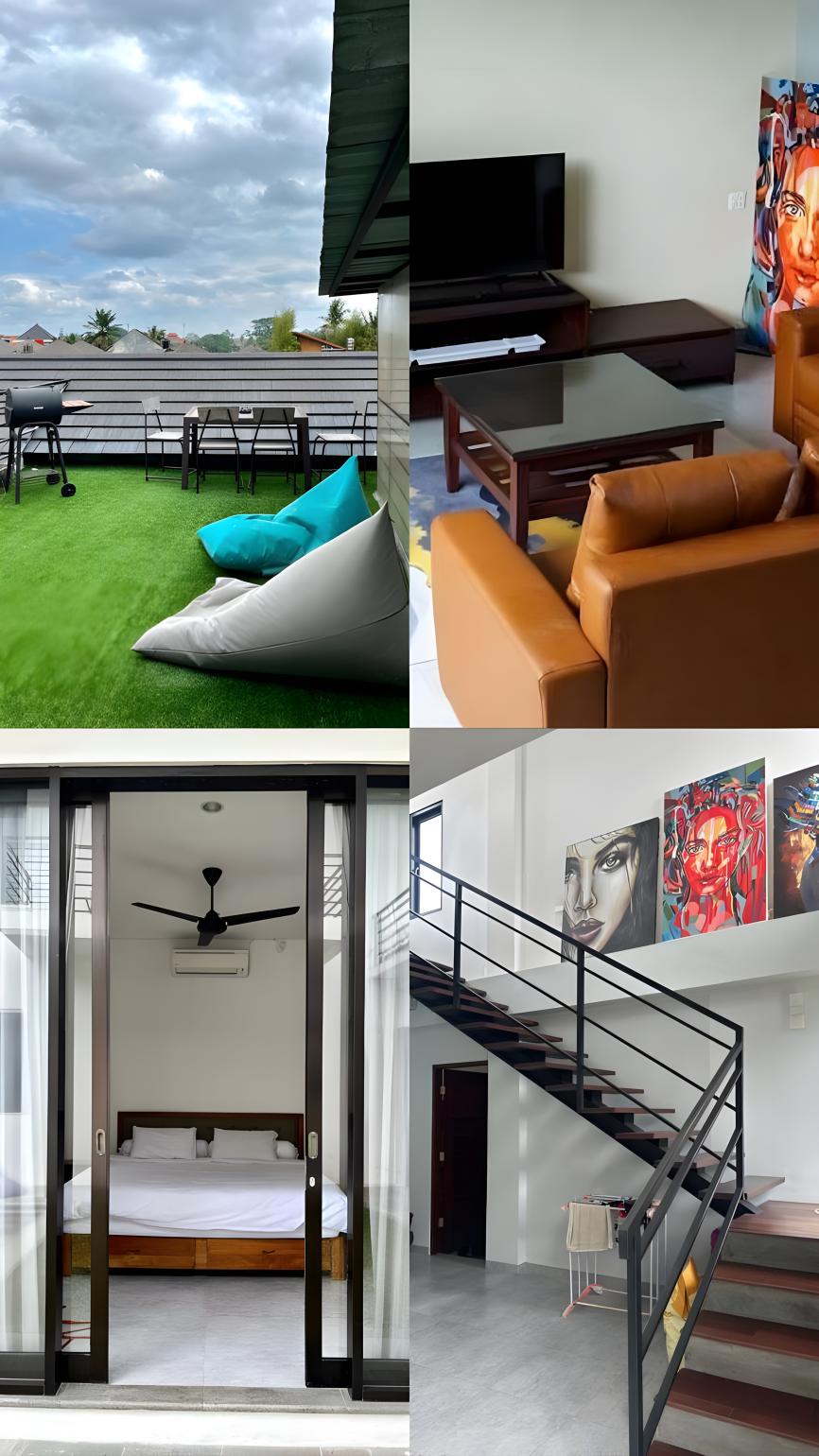 Вилла большая, места много, есть стиралка и сушилка. Большая кухня, проектор для фильмов, большая крытая общая зона, бассейн