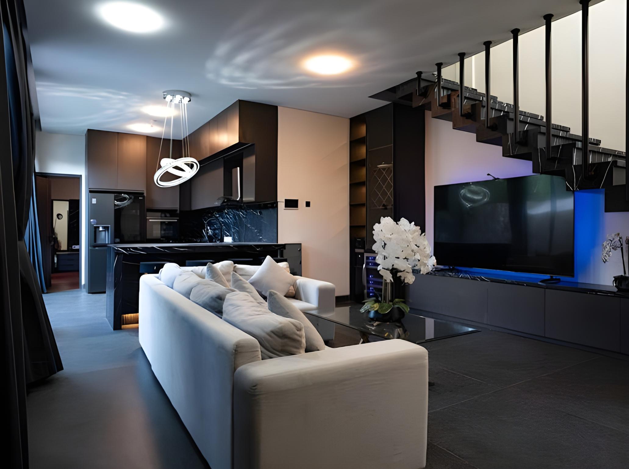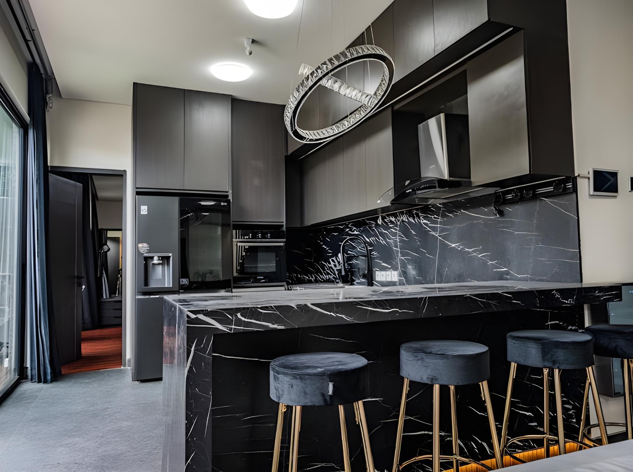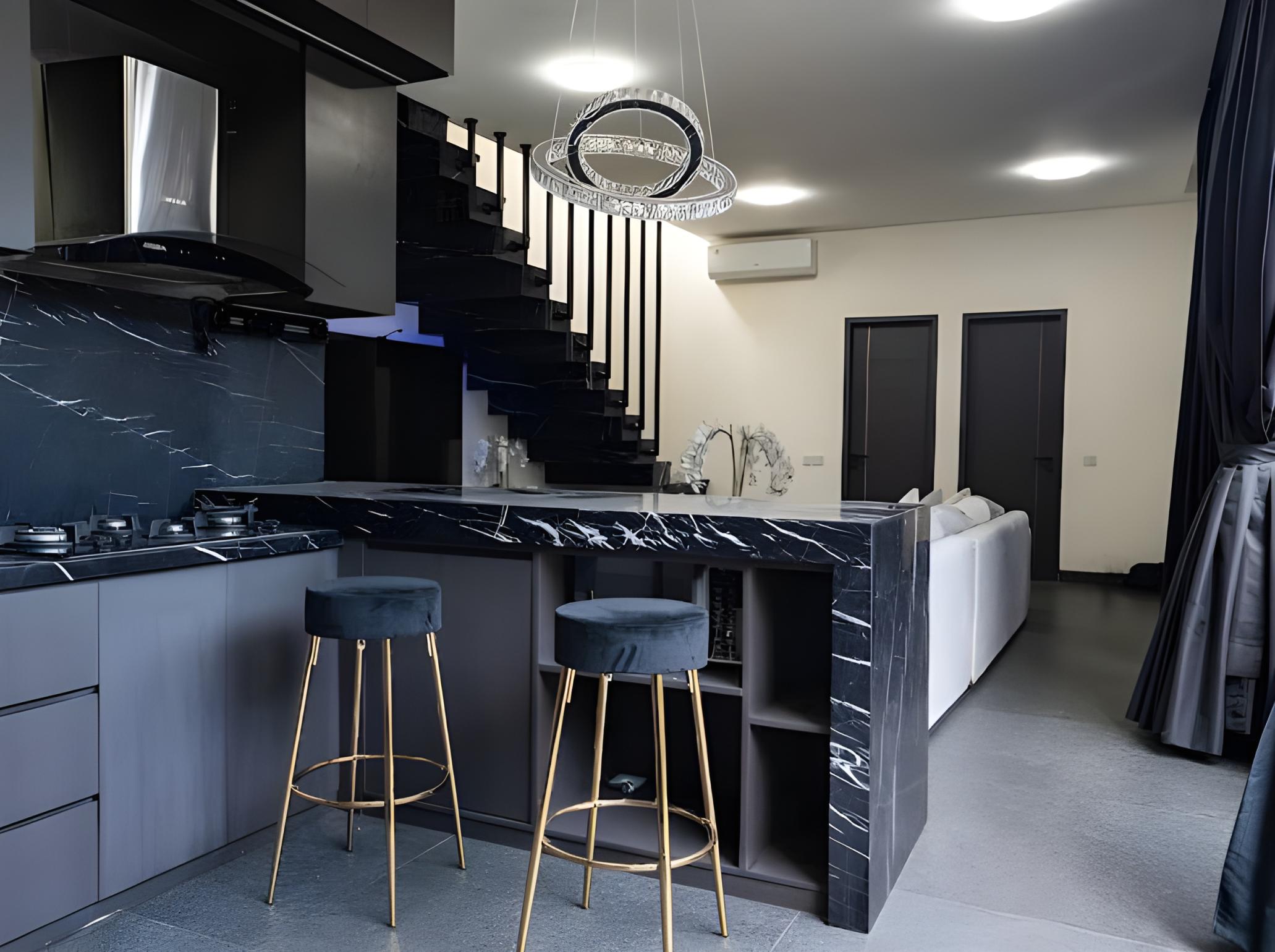 — современная полностью оборудованная кухня с барной стойкой