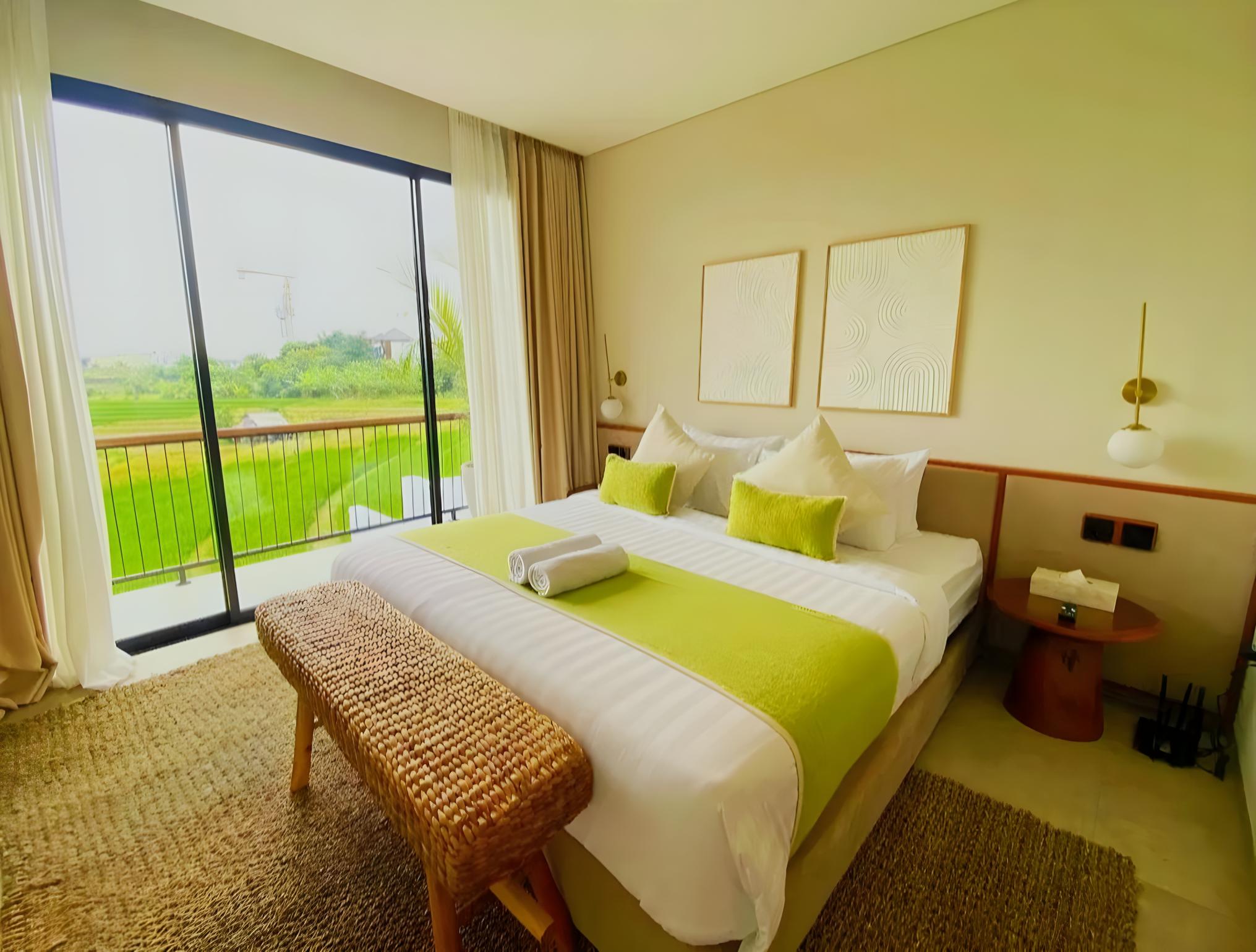 — Мастер-спальня с кроватью King Size и потрясающим видом на рисовые поля