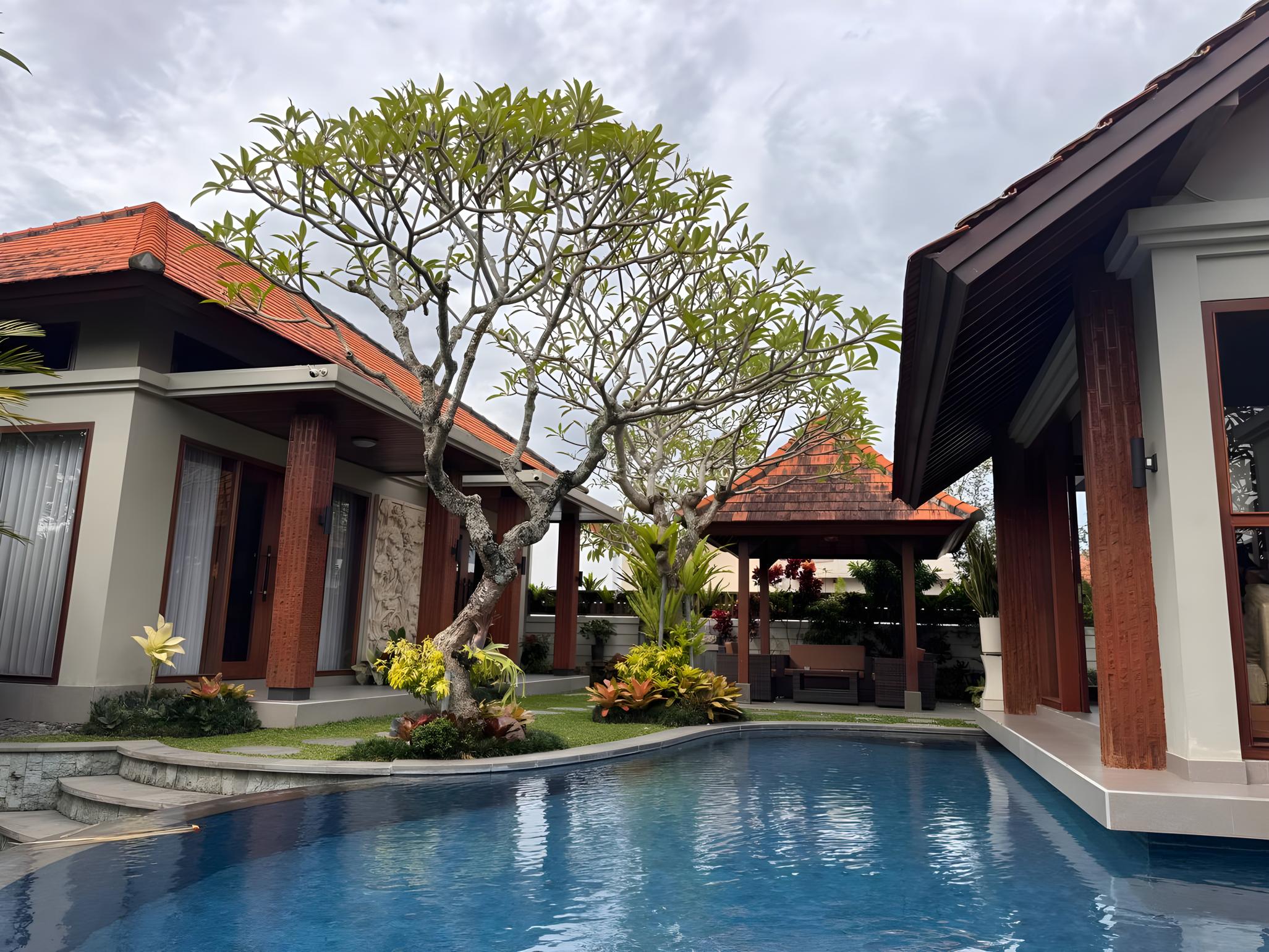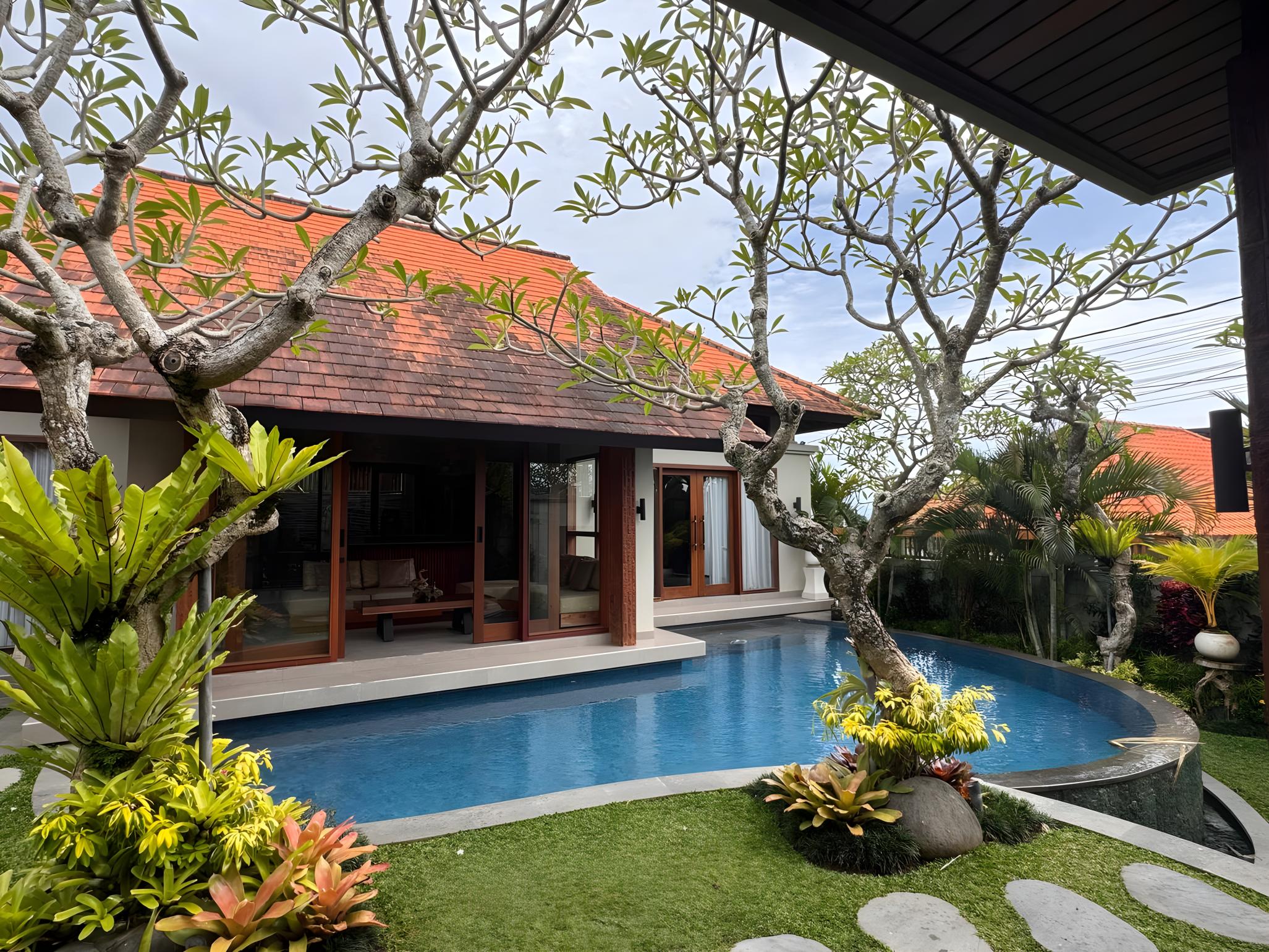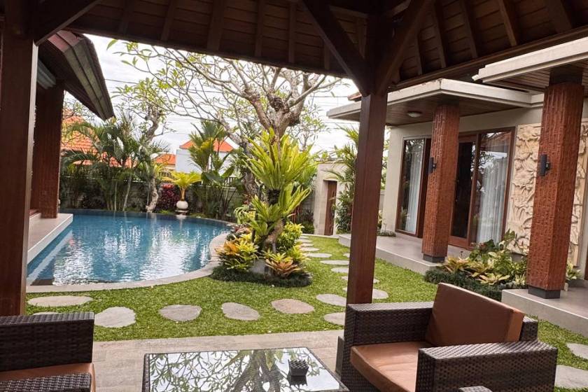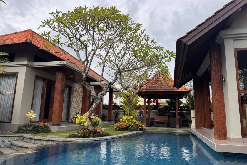 4Bedroom, 5 bathroom laundry on site, parking, private gated space, quiet but convenient location 10 mins to beach & Canggu.