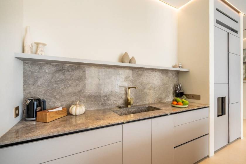 The kitchen is fully equipped with everything you need, including a stove, refrigerator, microwave, kettle and all necessary kitchen and tableware.