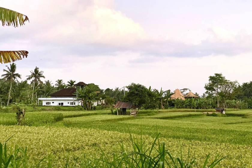🌾 Wide terrace overlooking peaceful rice-field views