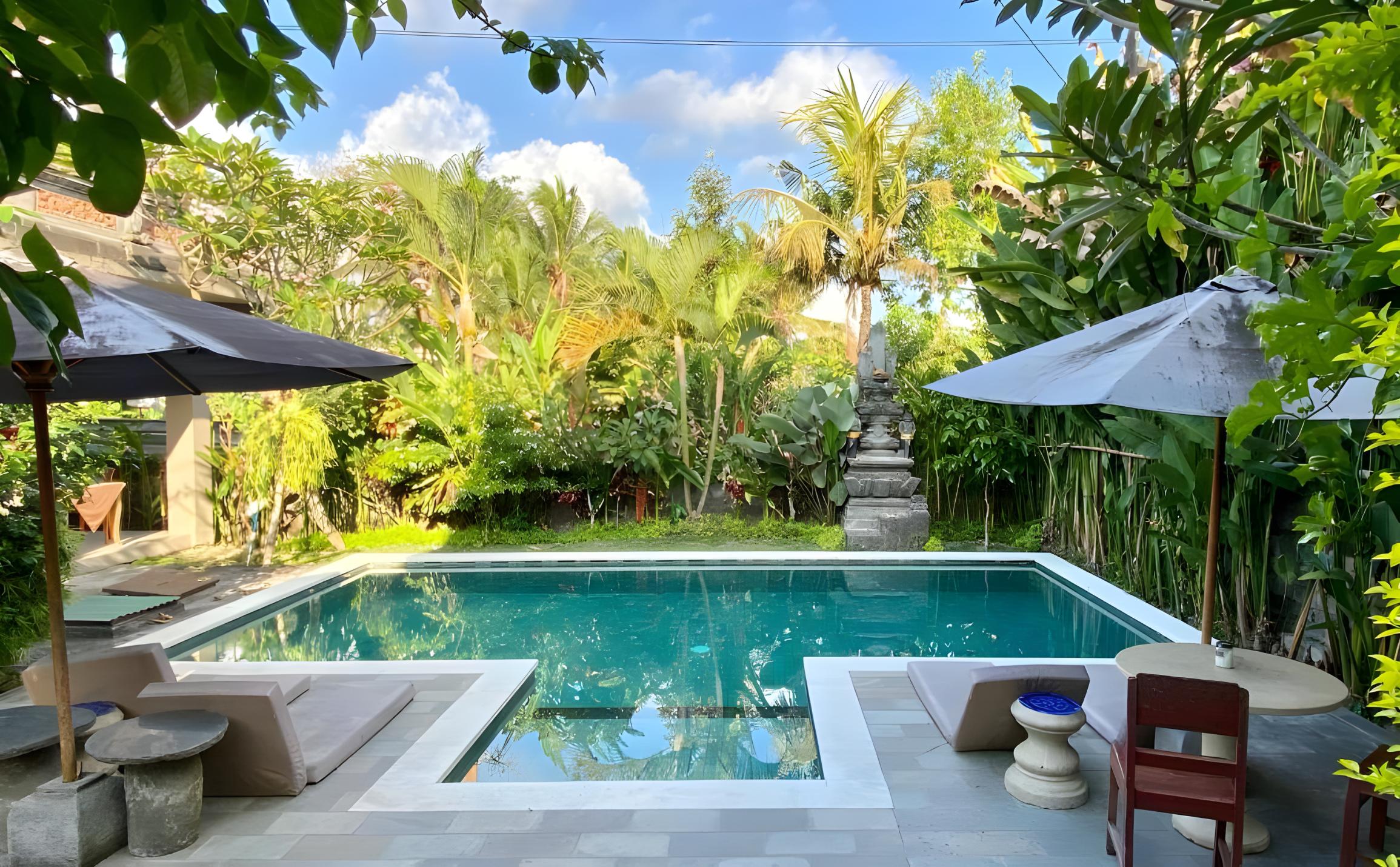 Находится в центре Убуда, улица Бисма. Гест окружен зеленью, есть своя небольшая территория с бассейном, общей кухней.