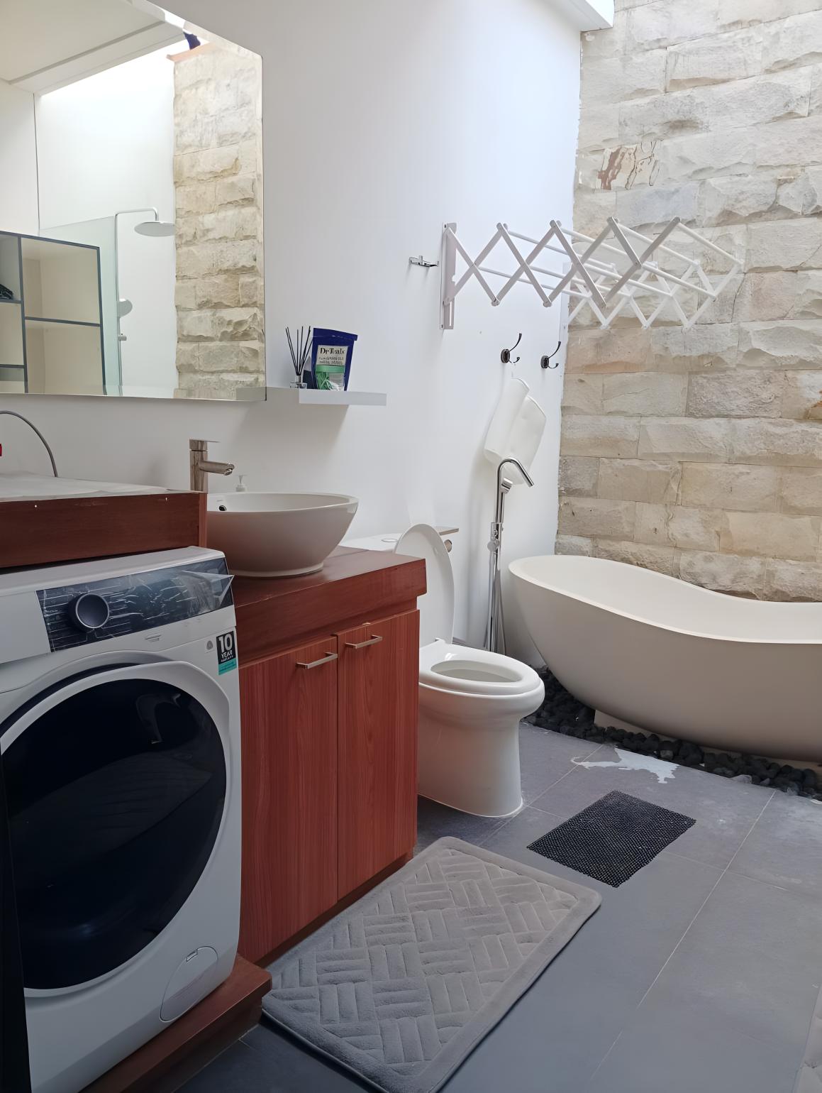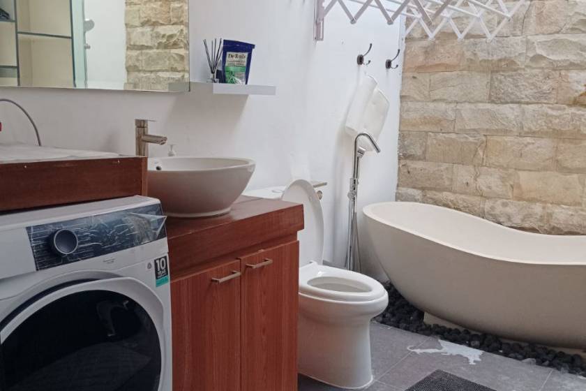 1 спальня с тв, 1 ванная комната с ванной, стиральная машина